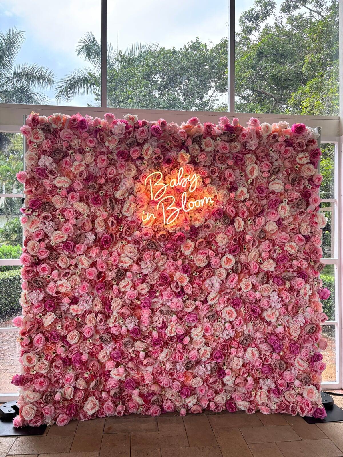 The Baby in Bloom wall exceeded all expectations. The quality, the fullness of the flowers, the colors — perfection. It transformed the venue and created the cutest photo memories.